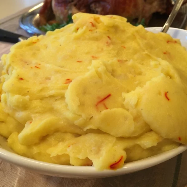 I found this mashed potato recipe on Heidi Swanson of 101 Cookbook's website around the same time as the salad. Growing up, my mom would make Saffron Rice all time — always reiterating how expensive the beautiful herb is and how little of it you get — and I loved it. It never ceased to amaze me how just a few strands could completely alter the color of a dish. The taste wasn't too bad either. So, when I simply saw the title of Heidi's dish, I knew I had to try it.